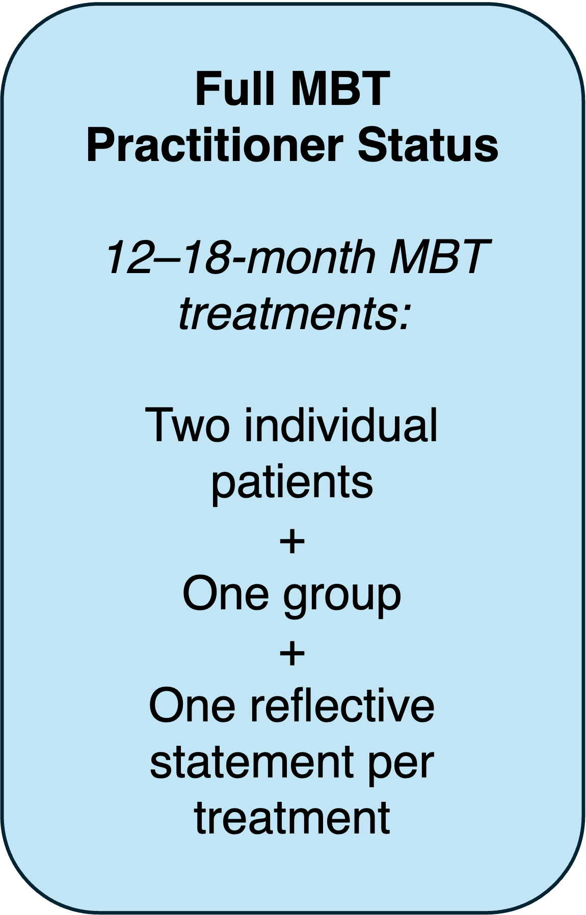 Do you really like mentalization-based treatment (MBT), and you want to take your MBT training to the next level? See below for the steps that you need to take in order to become an official MBT provider. Click HERE for the MBT Practitioner Status Pack, as outlined by Anna Freud in London.